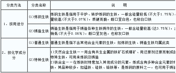 鋼鐵材料通常是指鐵碳合金,按含碳量的大小分類,含碳量(質量分數)大于2%的爲生鐵,小于2%的爲鋼,含碳量(質量分數)小于0.04%的爲工業純鐵。